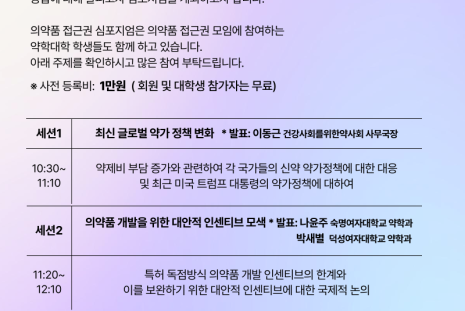 우리 모두가 필요한 약을 제대로 공급받을 수 있는 방법을 알고 싶다면, 이번 심포지엄에서 함께 해요!