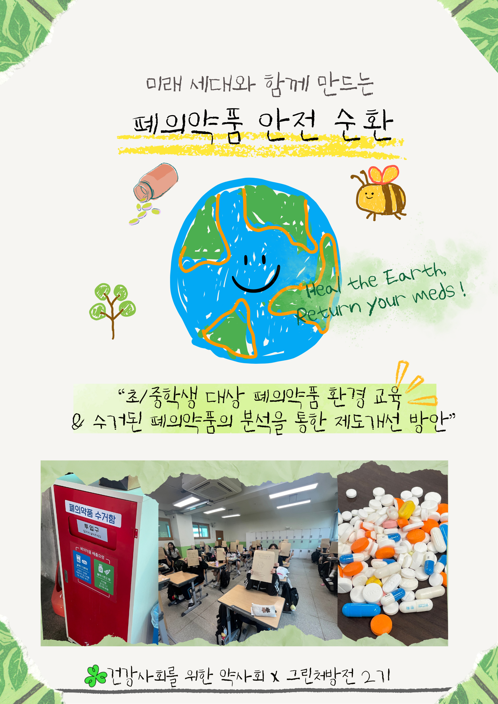 - 건약과 약대생이 함께 초·중학생 대상 환경교육 및 폐의약품 수거·분석 실시