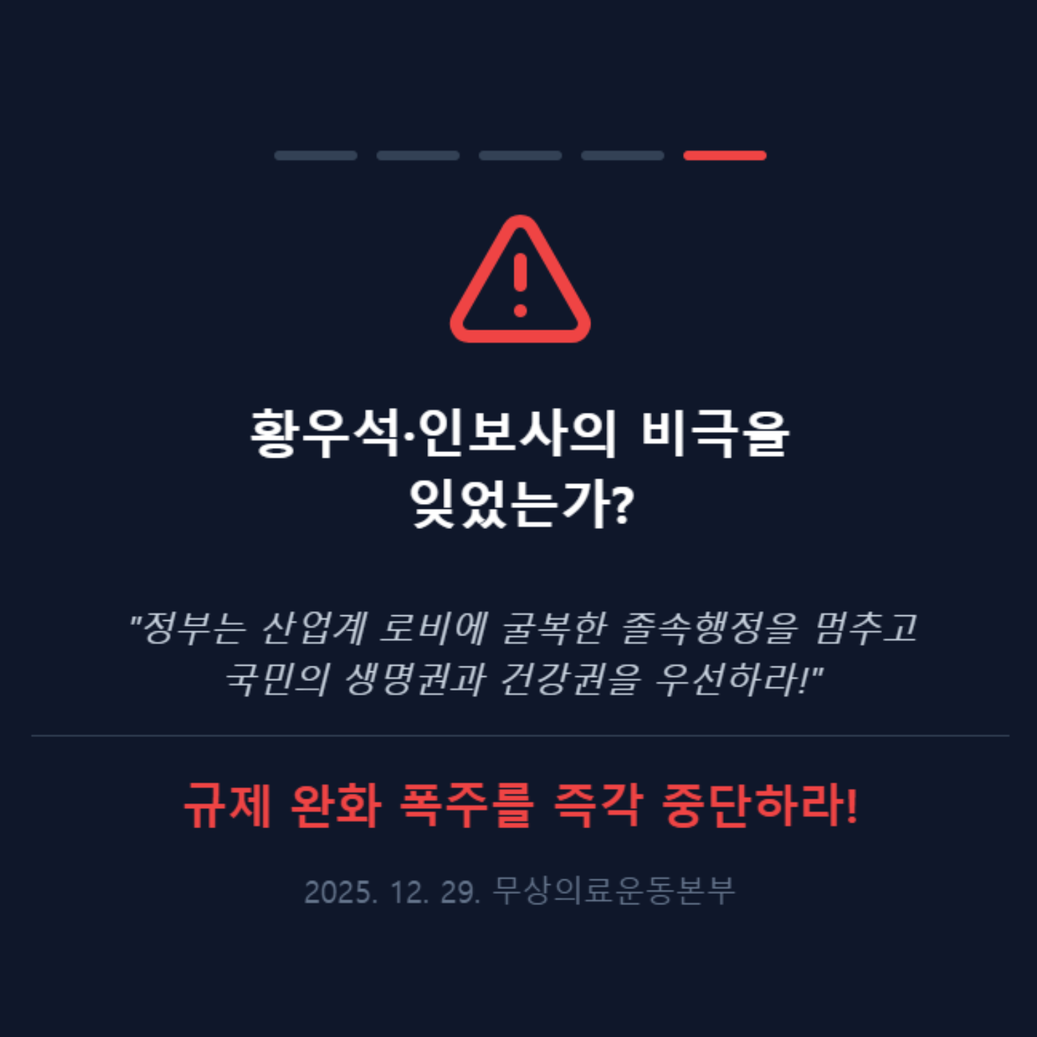 - 정부는 산업계 로비에 굴복한 졸속행정을 멈추고 환자 안전 보호에 매진해야