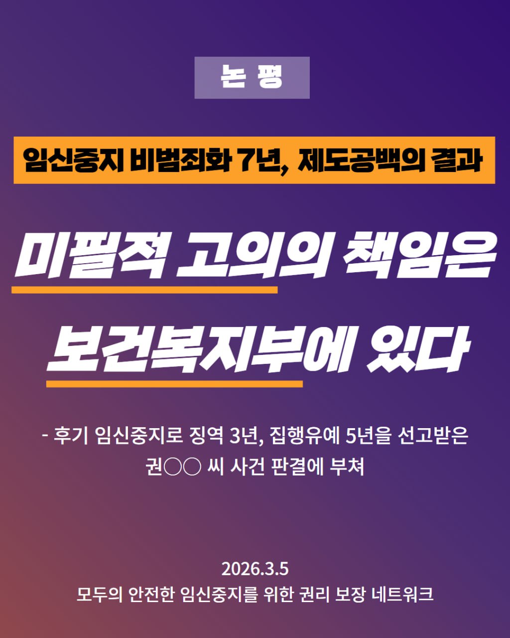 -후기 임신중지로 징역 3년, 집행유예 5년을 선고받은 권○○ 씨 사건 판결에 부쳐