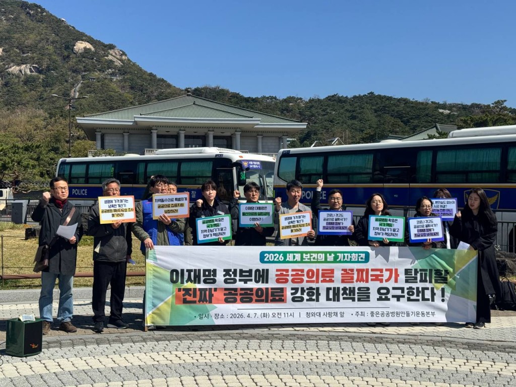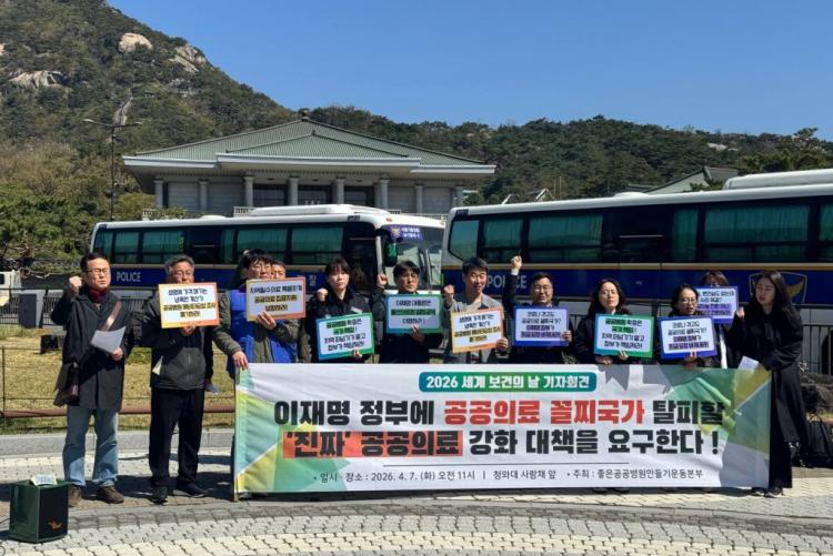 이재명정부 출범 후 첫 ‘세계 보건의 날’ 우리는 전국 각지에서 청와대 앞에 모였다. 코로나 재난 이후 수년이 흘렀고 정권이 바뀐 지도 10개월이 다 되어가지만, 여전히 한국은 공공의료 꼴찌 국가이다. 그러나 우리는 중앙정부의 책임 회피 발언만을 목도하고 있다. 이에 지역의료 붕괴의 유일한 대안인 공공의료 확충을 줄기차게 요구해온 우리는 다시한번 중앙정부의 책임을 이재명 대통령에게 묻는다.