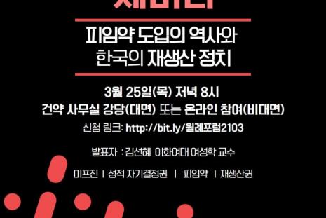 2021 첫 엘림포럼의 주제는 '피임약 도입의 역사와 한국의 재생산 정치'입니다.