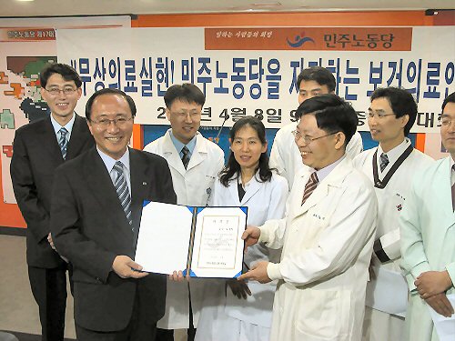 민주노동당의 지지를 통해 획득하고자 하는 완전한 민주주의와 민중의 건강 및 복리의 실현은 결코 불가능한 과제가 아니다. 민중의 건강과 생명, 민주주의와 평화의 일보 전진은 당면 총선에서 민주노동당의 지지로부터 출발해야 한다. 진보정치는 먼 미래의 일이 아니고, 우리가 당장 실현해야할 이 시대의 가장 우선적인 가치임을 믿으며, 우리 보건의료인들은 민주노동당에 대한 지지를 선언하는 바이다.