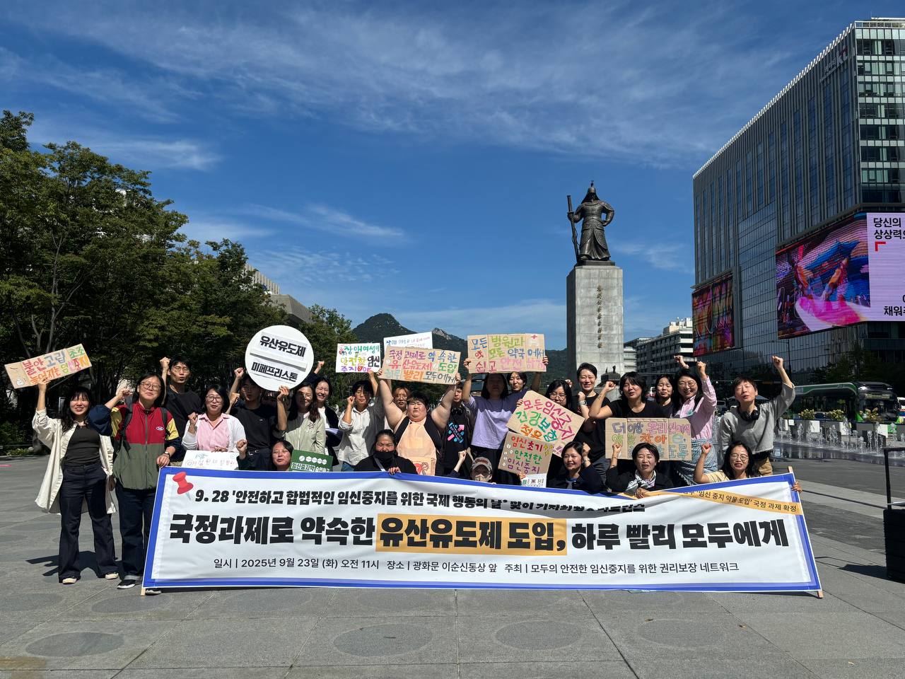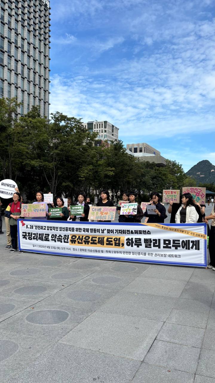 - 모임넷은 ‘9.28 안전하고 합법적인 임신중지를 위한 국제 행동의 날’을 맞이하여 안전하고 합법적인 임신중지의 중요성을 재조명하고, 유산유도제의 도입을 촉구하는 한편, 접근성 확대를 요구하는 <국정과제로 약속한 유산유도제 도입, 하루 빨리 모두에게!> 기자회견을 9월 23일(화) 오전 11시 광화문 이순신 동상 앞에서 진행했습니다.