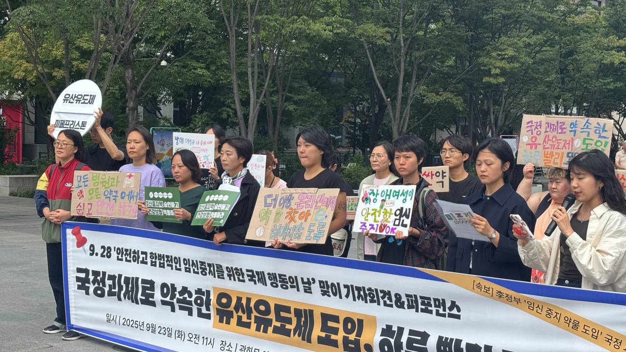 그동안 유산유도제가 도입되지 않아서, 안전한 임신중지 권리 보장을 위한 보건의료 체계가 마련되지 않아서 일어난 일들입니다. 마침내 유산유도제 도입이 국정과제로 확정되었습니다. 오늘 가장 강조하고 싶은 것은 무엇보다 임신 초기에 가장 안전하게 임신중지할 수 있는 방법은 유산유도제를 이용한 임신중지라는 것입니다. 주수 제한, 산부인과에서만 처방, 비싼 약값, 건강보험 제외라는 조건으로 도입된다면 또 다른 장벽을 만드는 것에 불과합니다. 유산유도제 도입은 안전한 임신중지 권리 보장의 시작입니다. 하루 빨리 유산유도제가 도입되고 임신중지를 원하는 모든 사람들이 언제, 어디서든, 안전하게 임신중지할 수 있도록 국가의 책임 있는 보건의료 체계 구축을 촉구합니다.