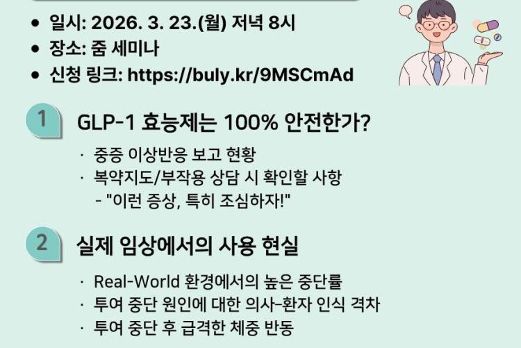 약물 부작용 세미나를 진행합니다.
