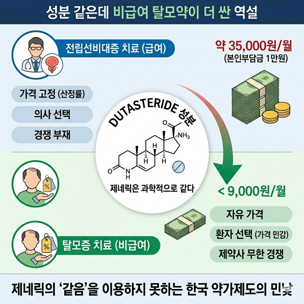 전립선약과 같은 성분인 탈모약, 비급여인데도 더 싼 이유